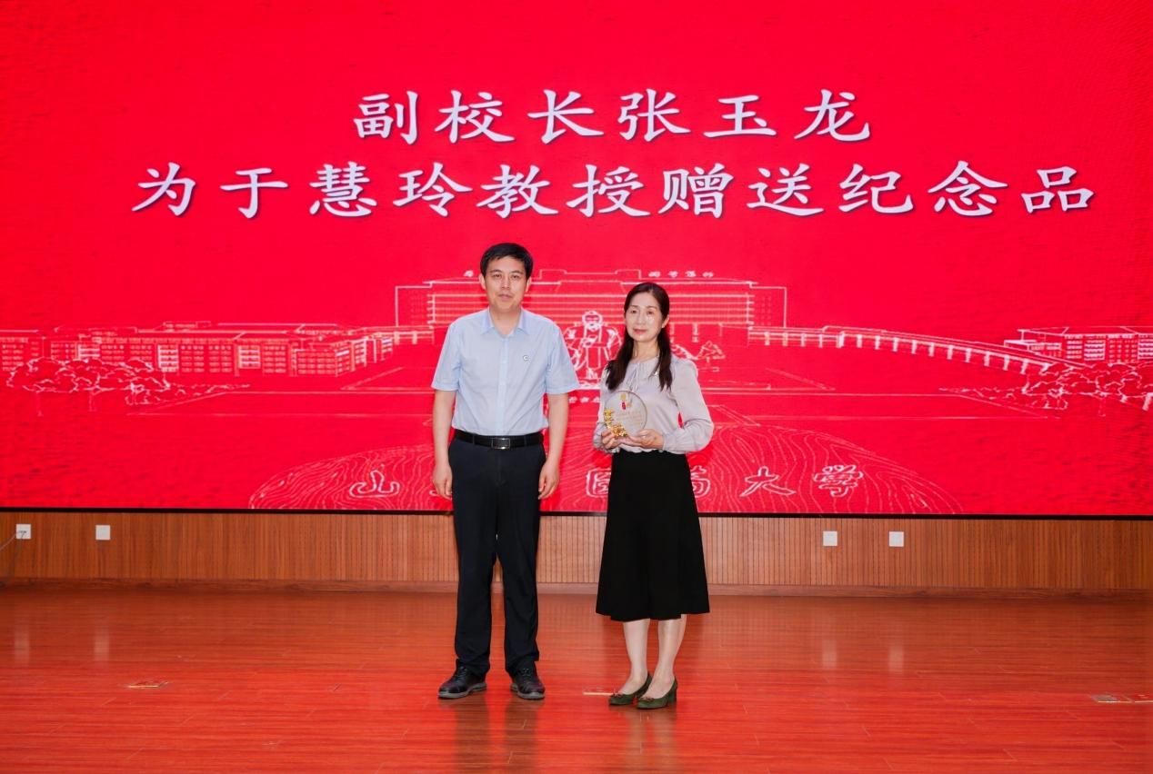 仪式最后,全体与会人员合影留念,定格这一温暖瞬间。于慧玲教授四十年如一日的坚守,诠释了“学高为师,身正为范”的深刻内涵,她留下的严谨学风、仁爱之心和担当精神,成为学院最宝贵的精神财富。正如王庆领书记所言:“于老师用行动书写了‘心有大我、至诚报国’的教育家精神,她的光与热将永远照亮我们前行的道路。”