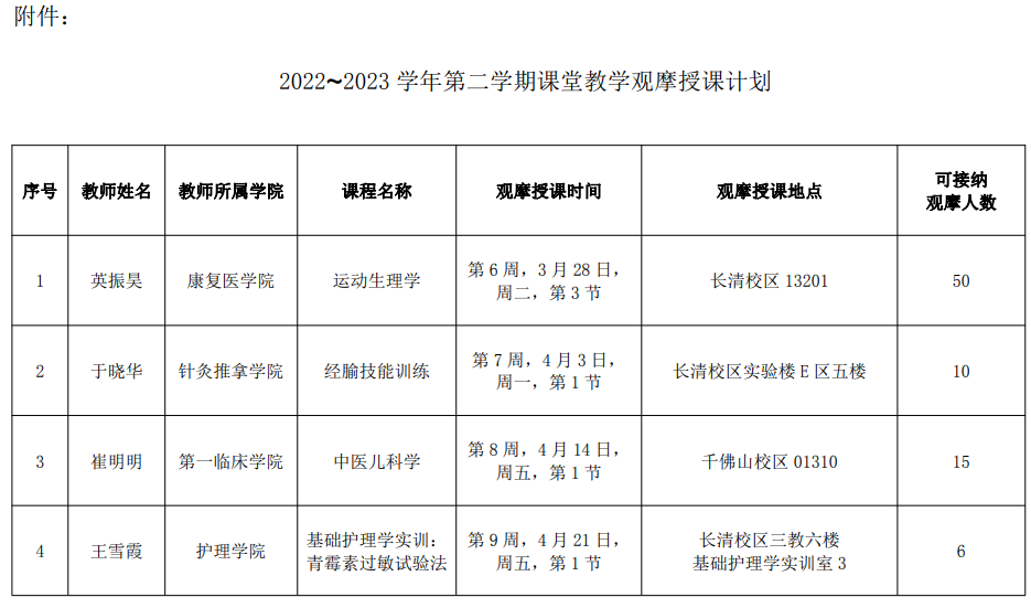 关于公布2022~2023学年第二学期课堂教学观摩授课计划的通知