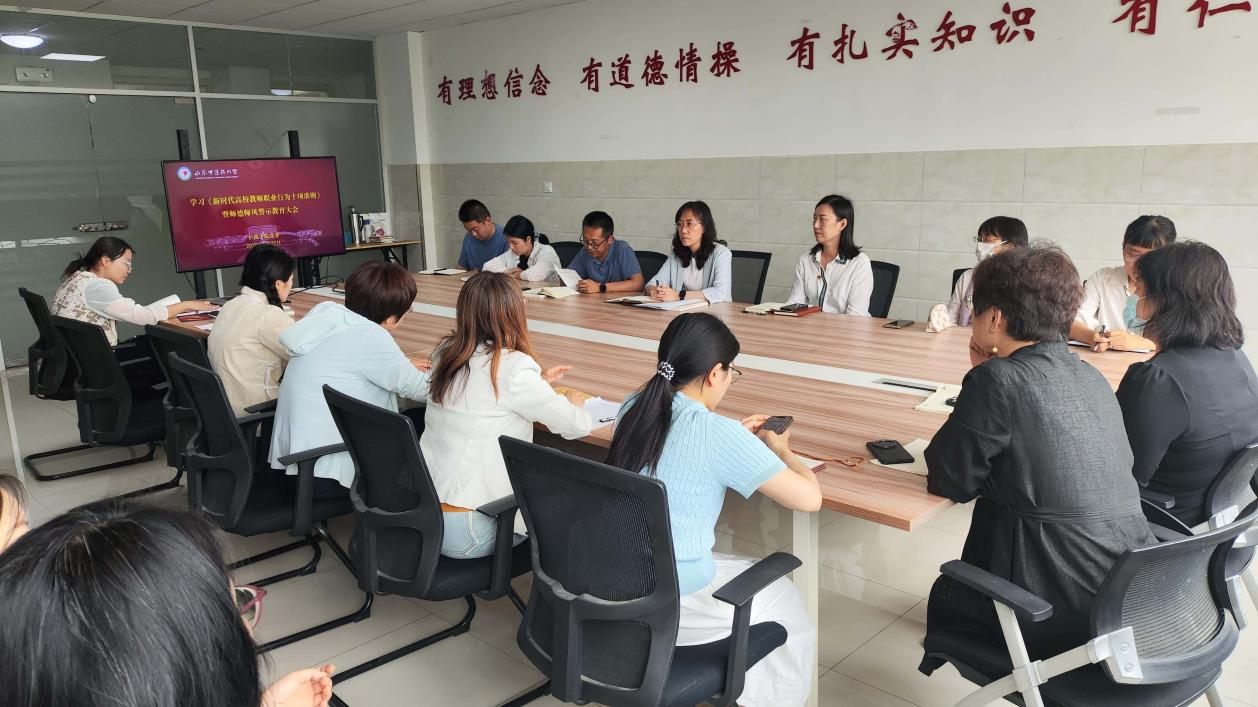 为深入贯彻落实全国教育大会精神,持续深化新时代教师队伍建设522下午,护理学院组织召开《新时代高校教师职业行为十项准则》专题学习暨师德师风警示教育大会。学院党委书记邵雨萌主持会议并讲话