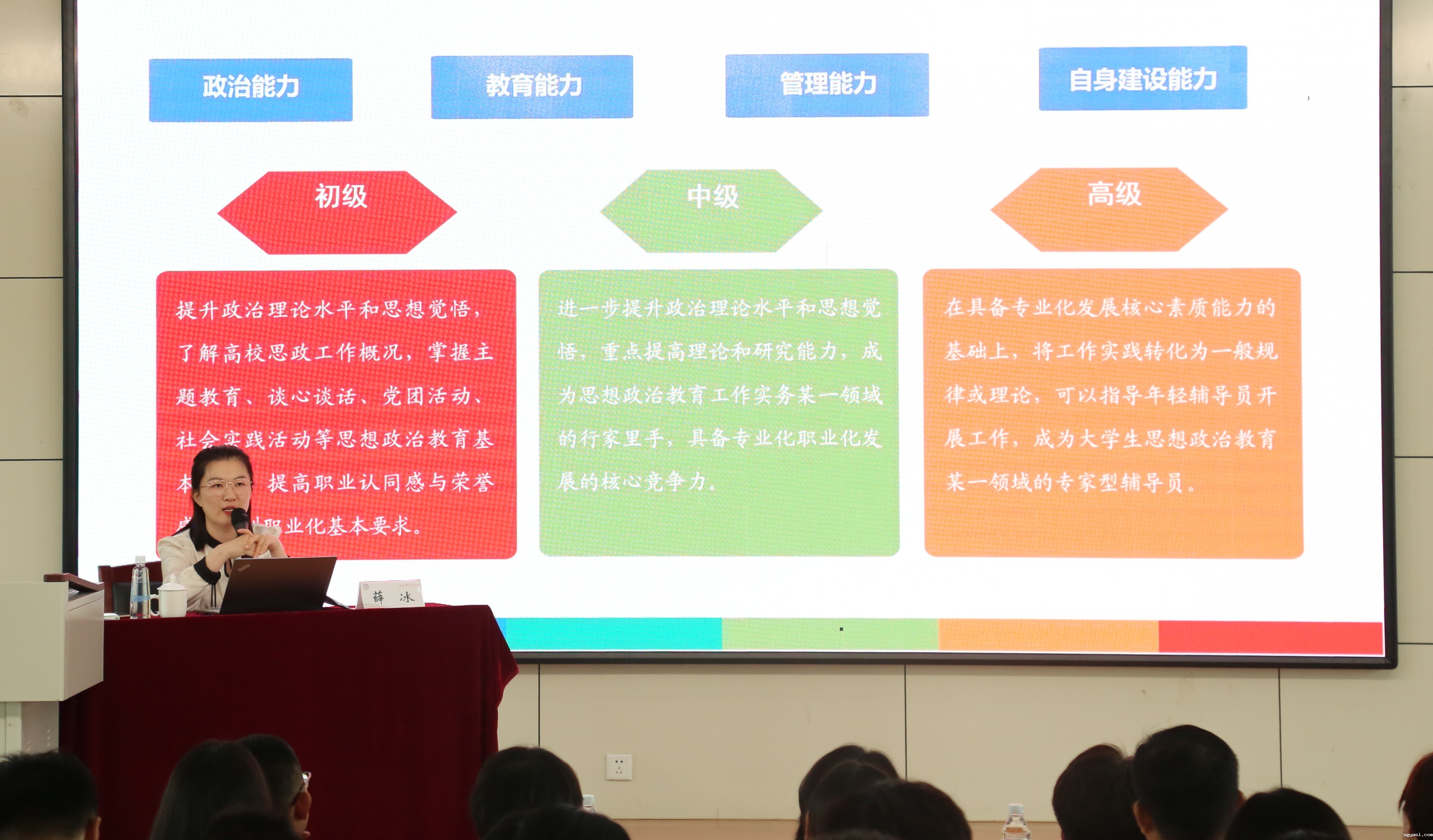 5月29日下午,学校在长清校区国际教育学院二楼多媒体报告厅举办辅导员素质能力提升专题培训,山东大学辅导员工作研究会与思政培训中心办公室副主任、2021年全国“最美高校辅导员”、2019年山东高校辅导员年度人物薛冰应邀作题为“辅导员工作的赋能与增效”专题讲座。