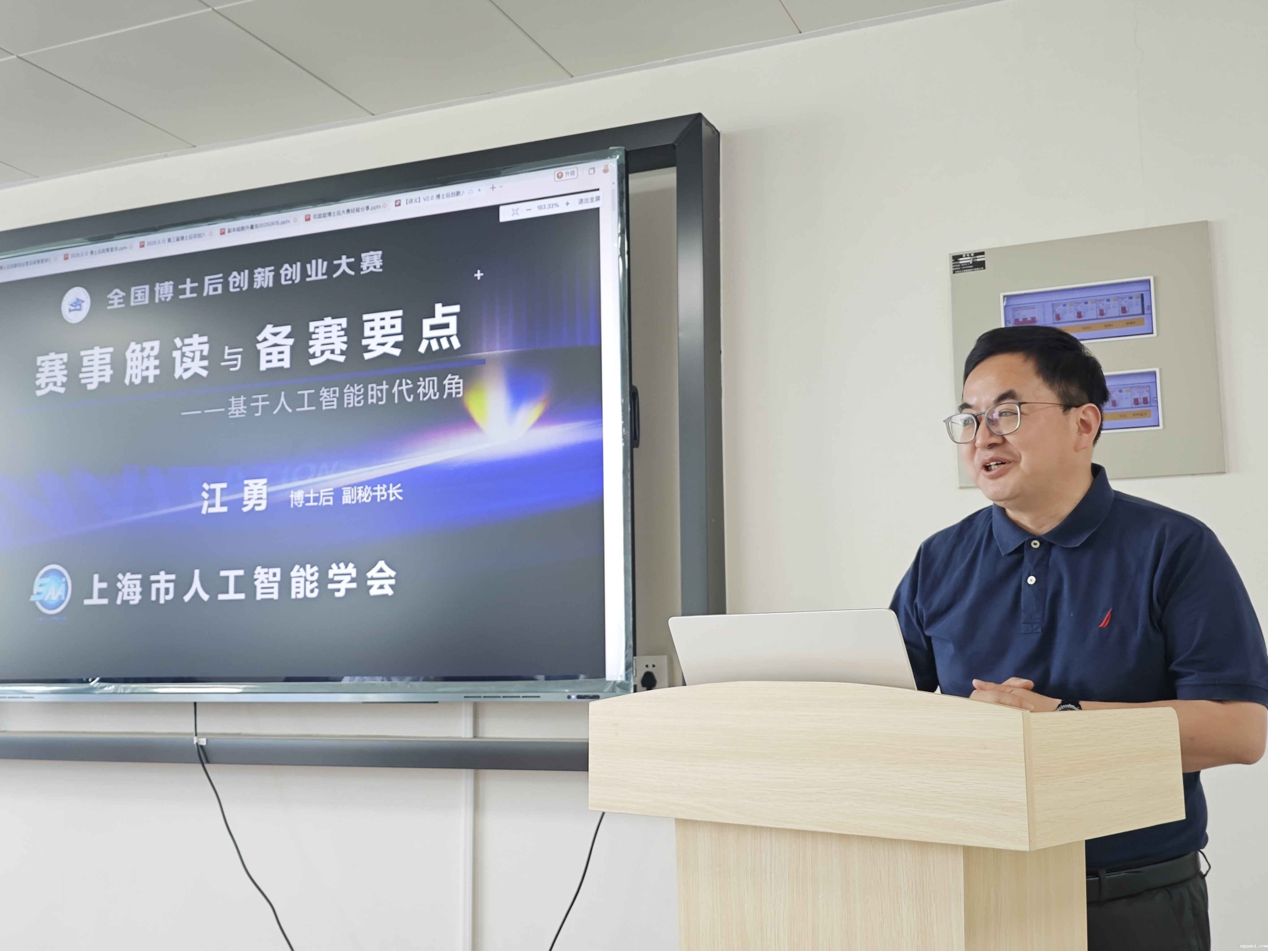 活动聚焦全国第三届博士后创新创业大赛,特邀上海市人工智能学会副秘书长江勇研究员作专题报告。江勇研究员结合人工智能时代背景,从大赛特点、高质量项目要素、成果转化难点、AI技术赋能选题策略、团队搭建逻辑等维度展开深度解析,同时针对拟参赛博士后的路演项目提出优化建议,多角度进行“把脉问诊”,为项目优化注入跨界思维。
