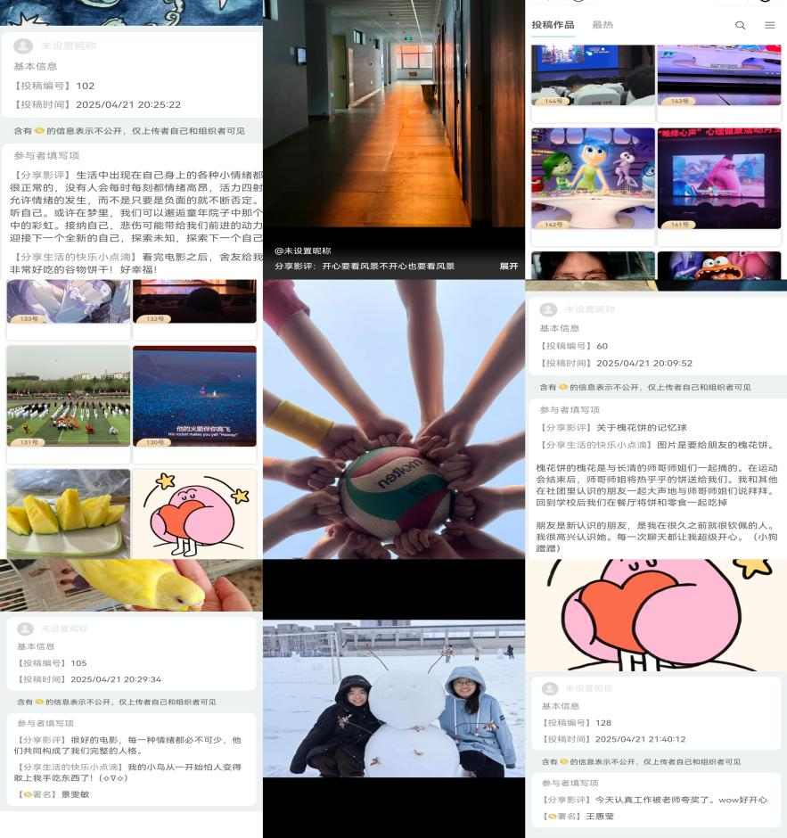 “眼绎心声”心理健康教育月活动中,同学们共同营造出的温暖和谐氛围,强化了每个人的集体归属感,充分展现了我院积极向上、团结一致的精神风貌。在未来的成才道路上,希望同学们能够齐心协力,以积极的心态迎接每一次挑战,用青春的活力和坚定的信念共同描绘出绚丽多彩的新篇章!