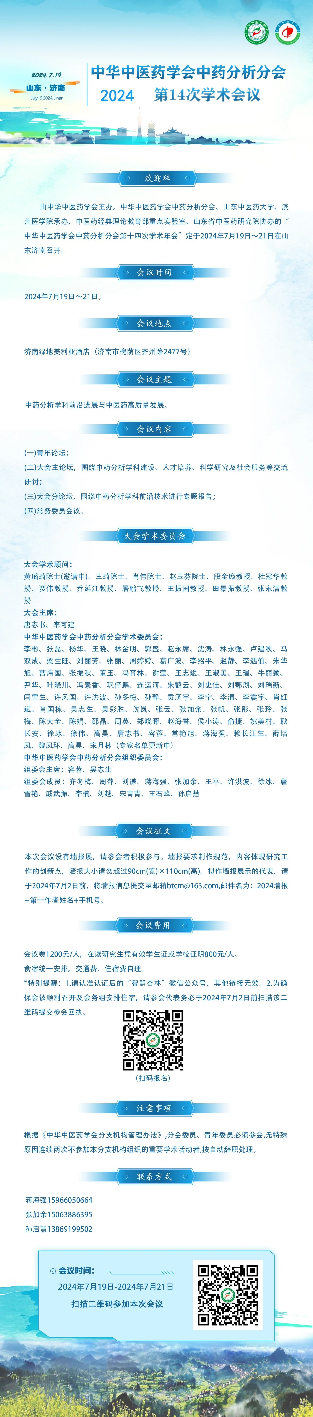 为进一步推动中药分析学术进步和学科发展,由中华中医药学会主办,中华中医药学会中药分析分会、taptap点点体育官网下载app、滨州医学院承办,中医药经典理论教育部重点实验室、山东省中医药研究院协办的中华中医药学会中药分析分会第十四次学术年会拟定于2024年7月19日-21日在山东济南召开。现将有关事项通知如下: