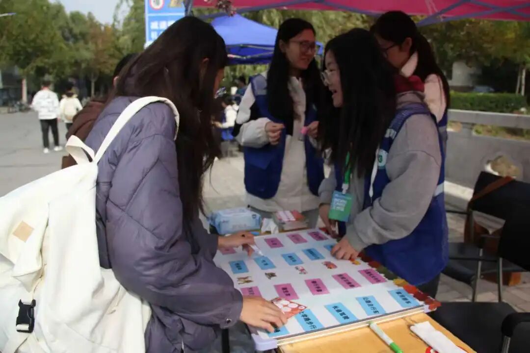 宣传板前,“灭火器压把怎么按”“宿舍逃生要弯腰捂口鼻”等知识点,经工作人员一讲全懂了;旁边的安全出口路线图,更是让大家默默记下“原来楼下左转就是安全通道”。