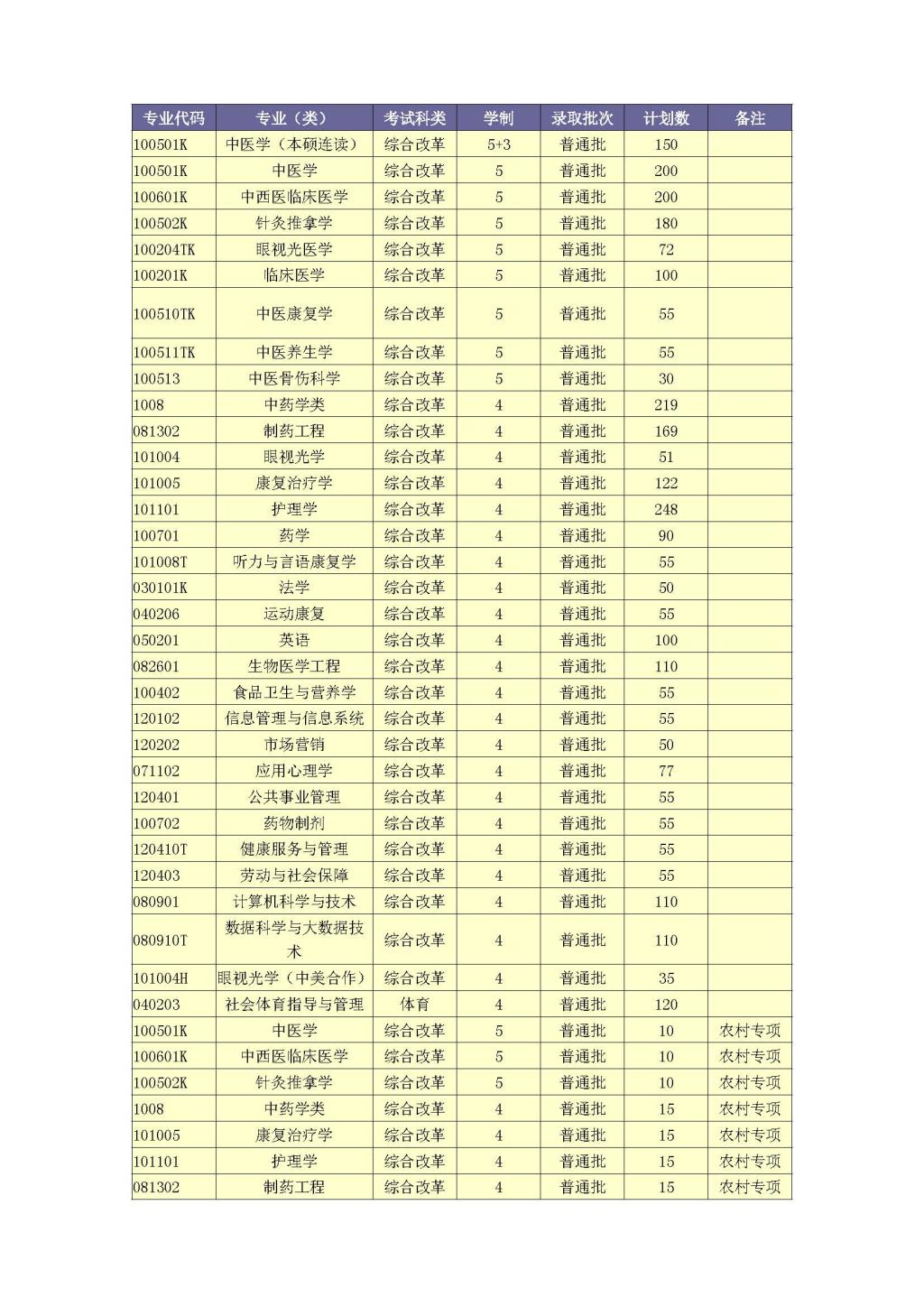 学校2020年山东省省属公费医学生招生计划