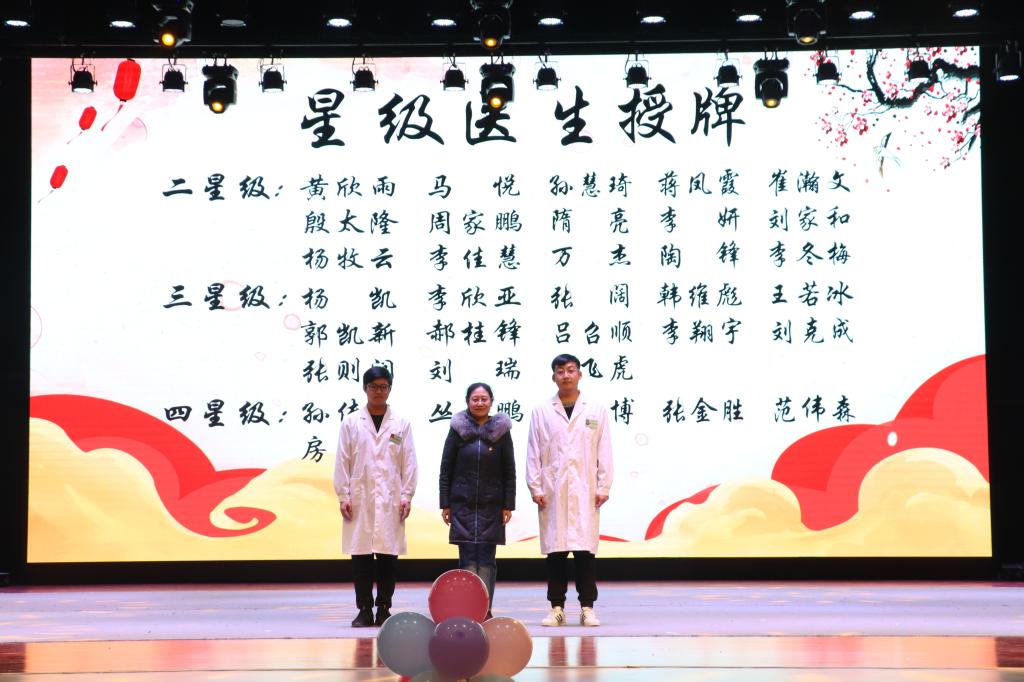 针灸推拿学院副院长孔庆悦为获得“三星级医生”称号的同学代表授牌
