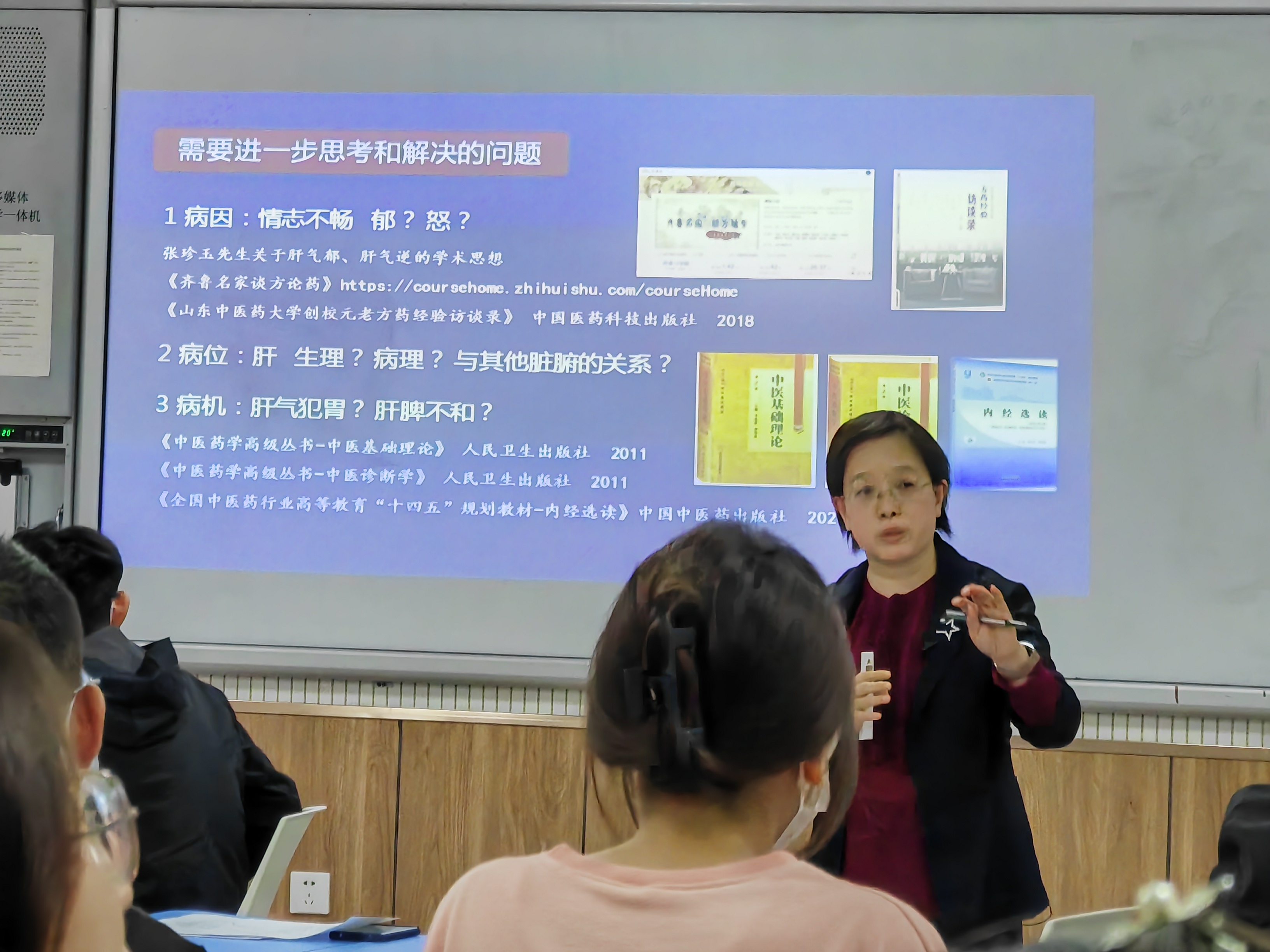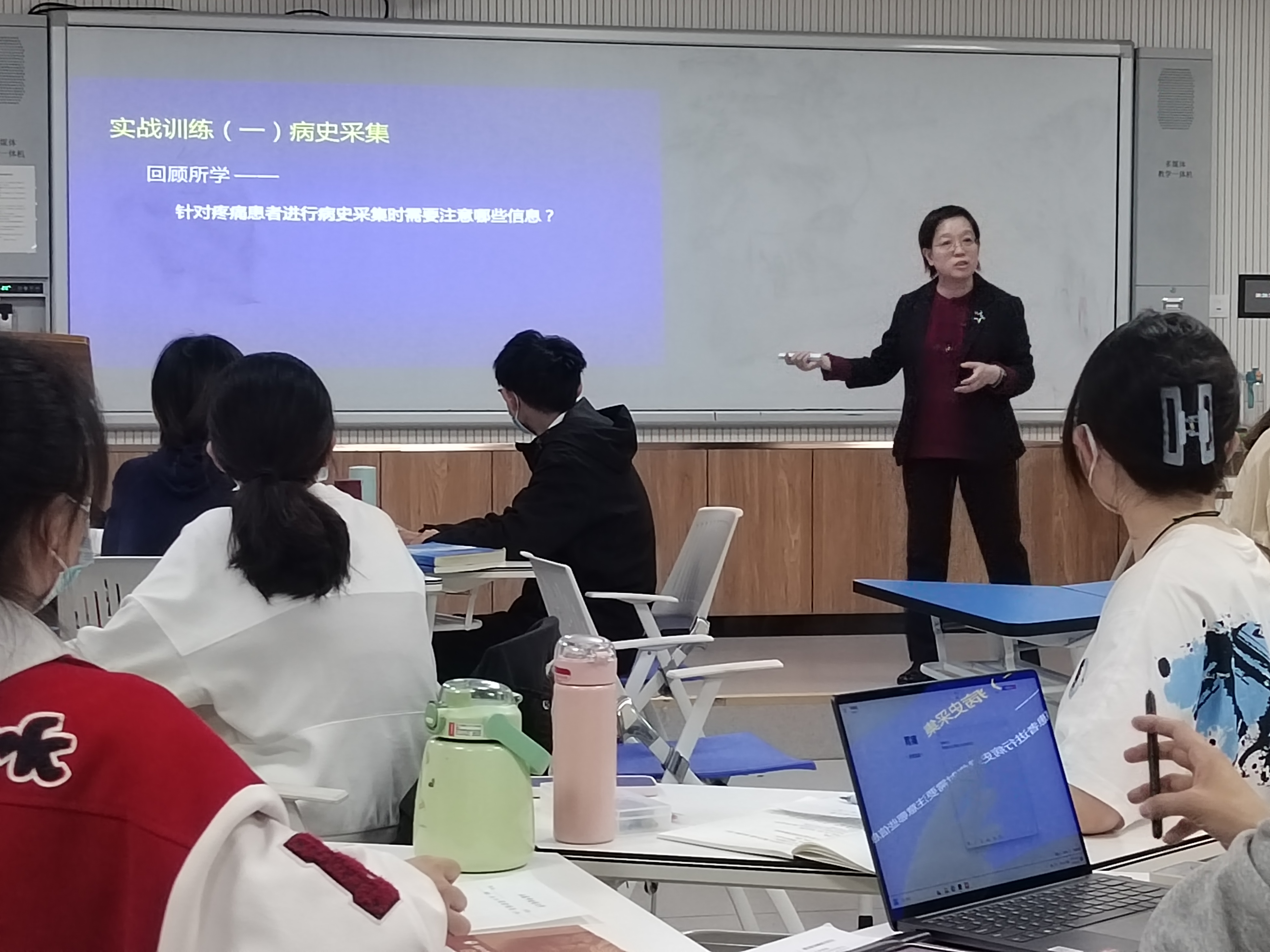 本期授课教师为中医学院王欣教授,讲授的课程为《中医证治概要》。王欣老师首先借助翻转课堂学习数据,给学生反馈了课前自主学习情况,接着王欣老师改变传统课堂讲授模式,引入SP模拟临床真实情境,通过病史信息采集、门诊病历书写、病因病机分析等教学环节,将临床思维培养前置,在实战训练中引导学生进行研究型学习,完成知识的自我建构,切实提升学生的自主学习能力和中医思维能力。
