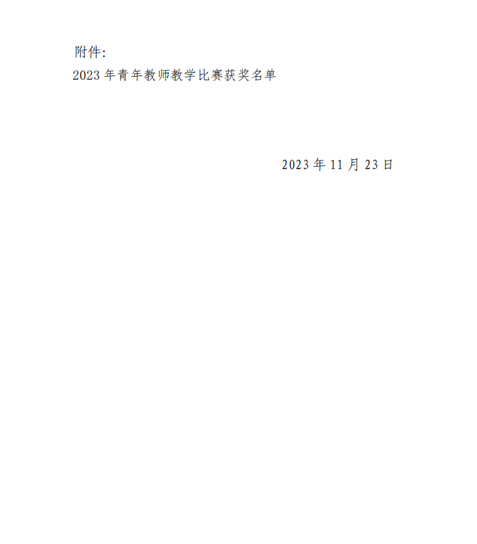 关于公布taptap点点体育官网下载app 2023 年青年教师 教学比赛获奖名单的通知