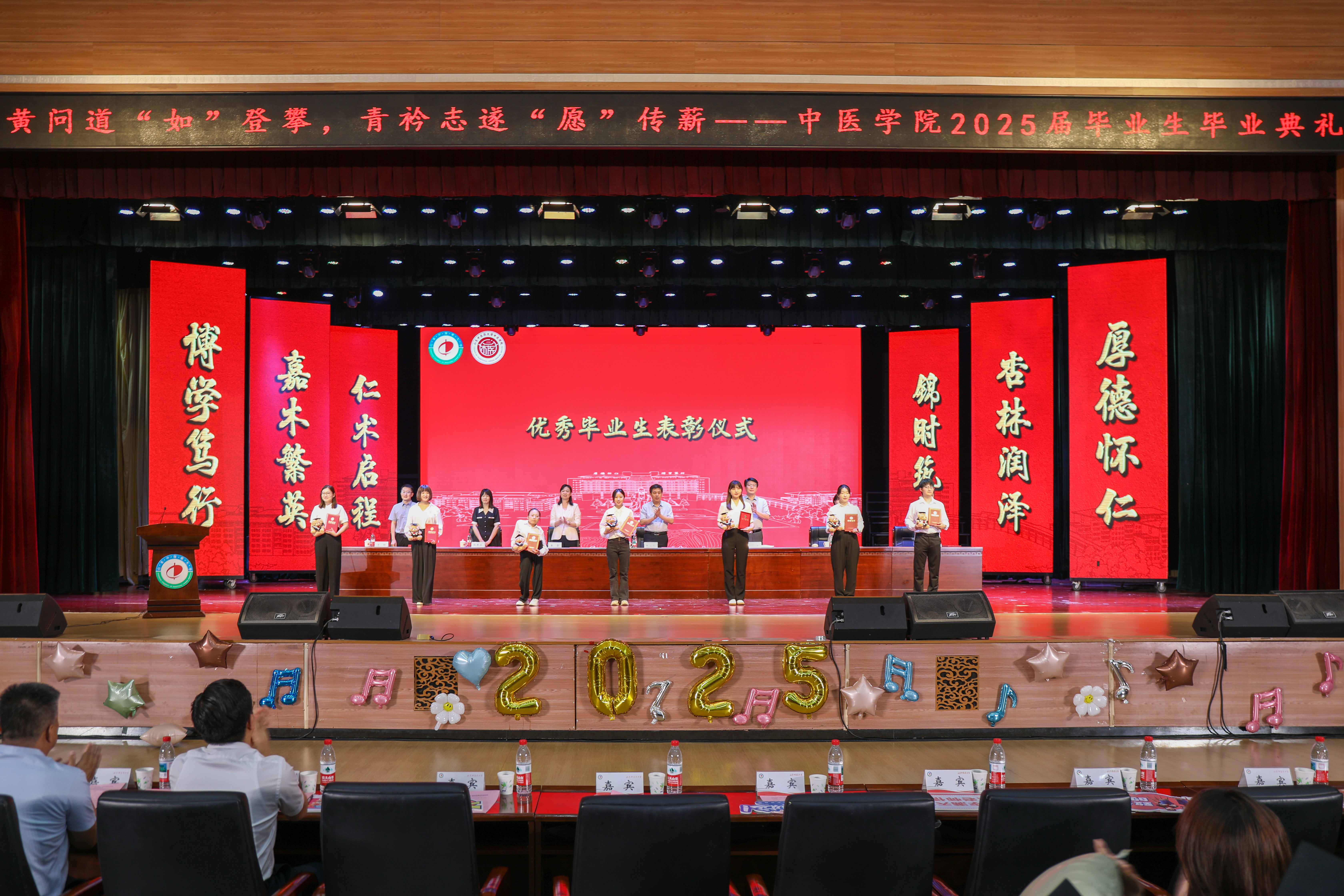中医学院领导班子成员、教师代表、毕业生家长代表、校友代表、全体学团干部,2025届全体毕业生参加典礼。